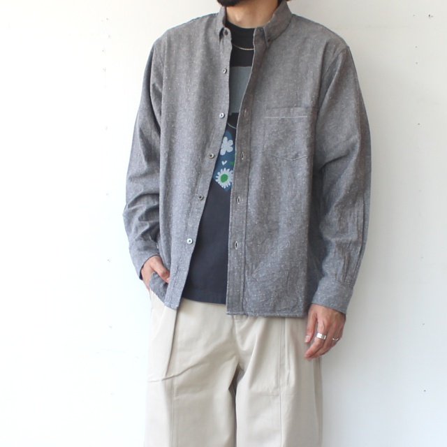 another 20th century コットンシルックB.Dワークシャツ Montmartre B.D noil – solid (Slate gray)