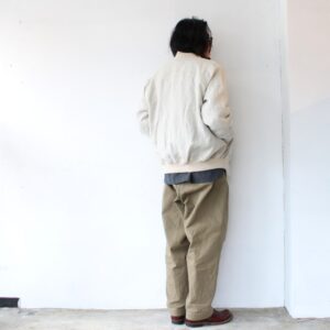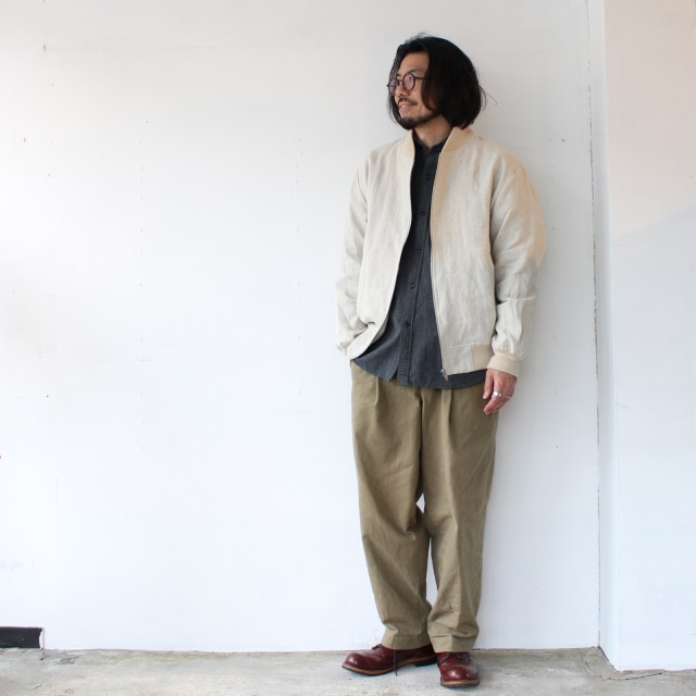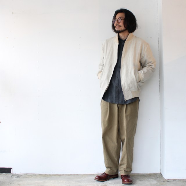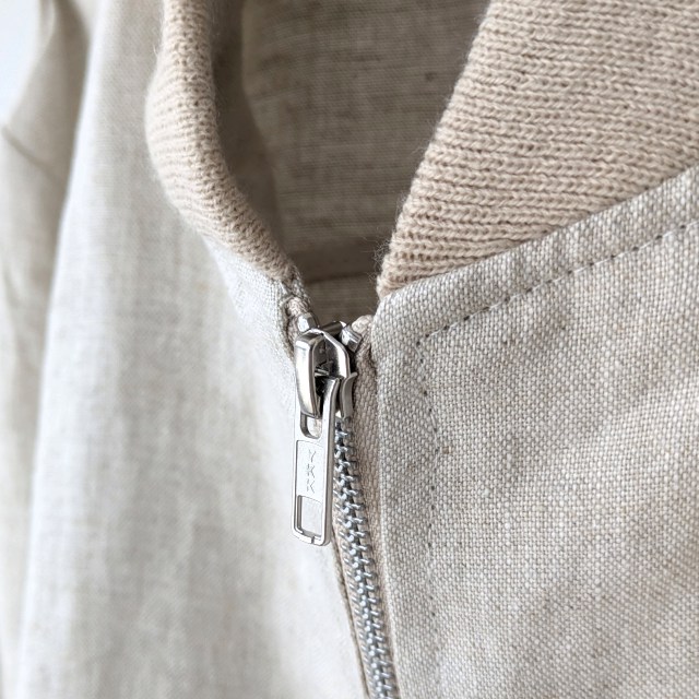 ボンバージャケットをベースに、EMBLEM社アイリッシュリネンを使うことで、春夏に快適なジャケットに仕上げています。