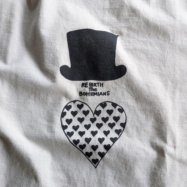 国産Tシャツボディに、Bohemiansの「LOVE HAT MINI HEART」プリント。
