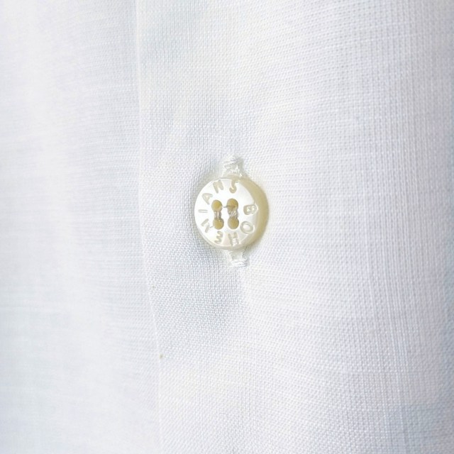 ボタンは厚みのあるオリジナル刻印入り貝ボタン。