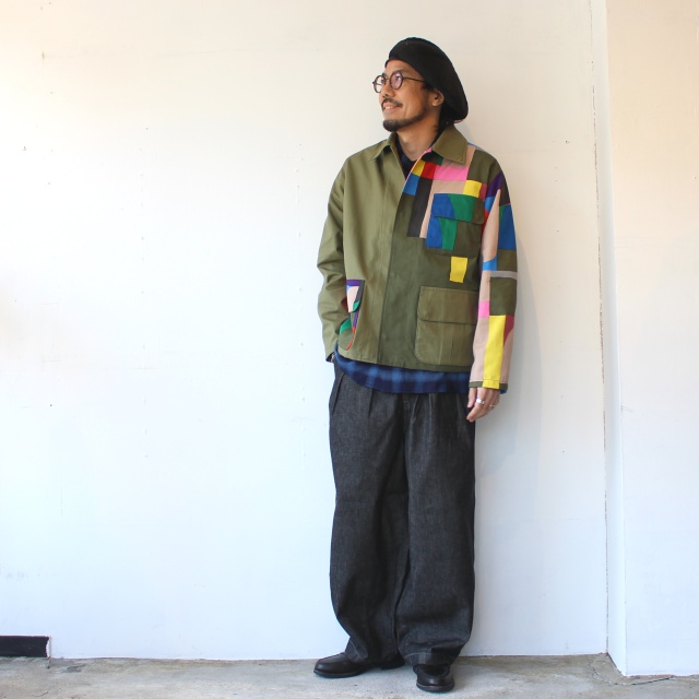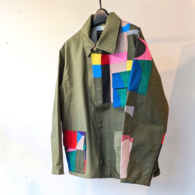 Bohemians パッチワークライクプリントワークジャケット Abstraction canvas × solid flap work jacket
