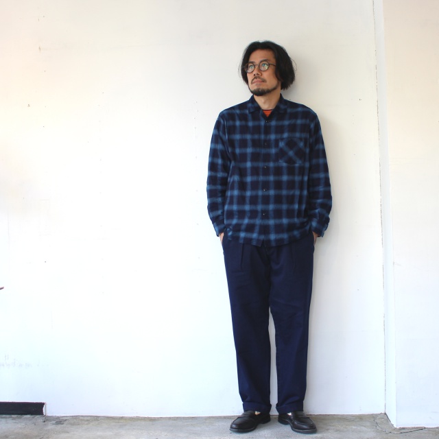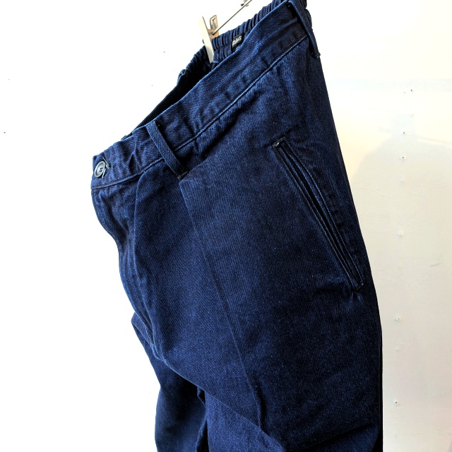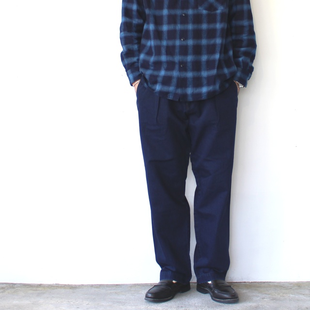 濃紺のインディゴデニムを使用したタックイージートラウザー。
