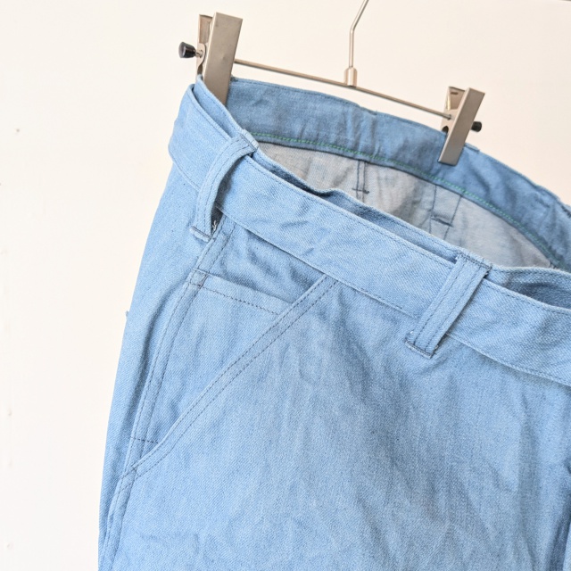 綺麗なサックスブルーカラーが爽やかでありつつ、ワークパンツらしい無骨さも合わさったデザインが◎