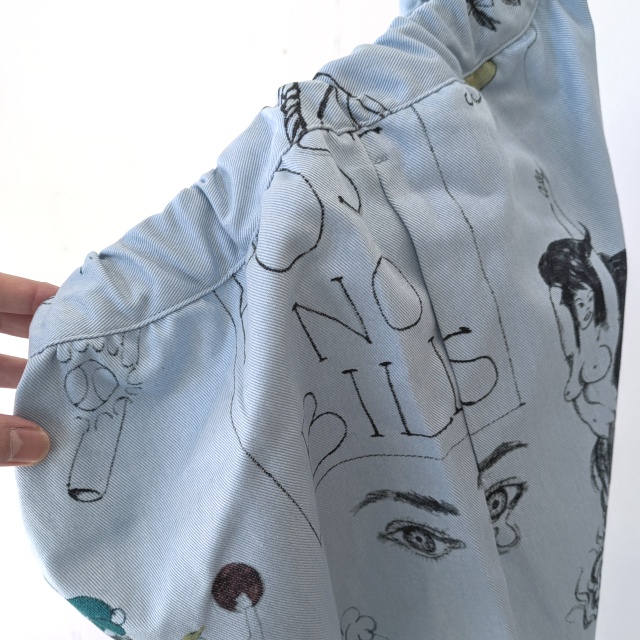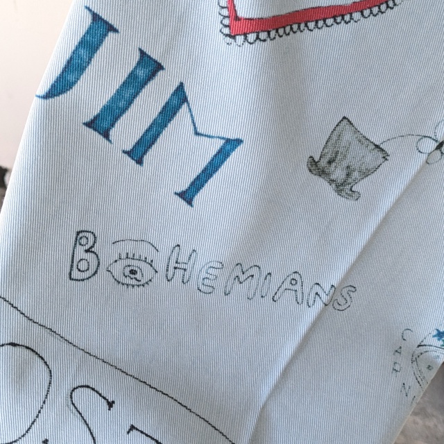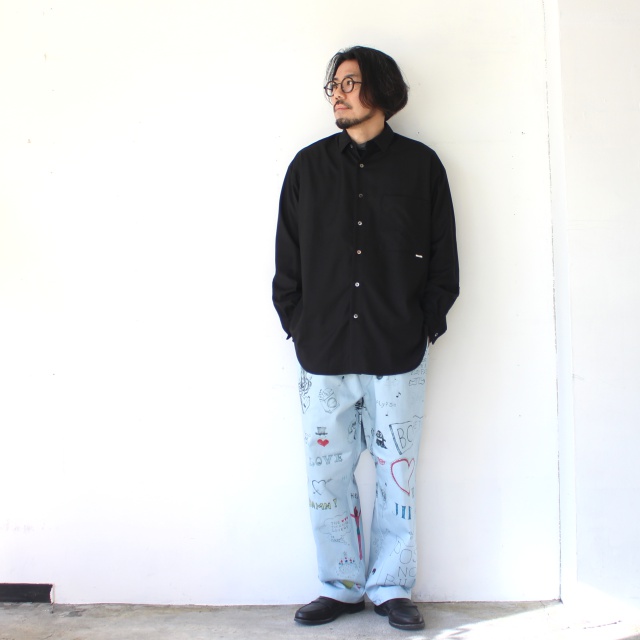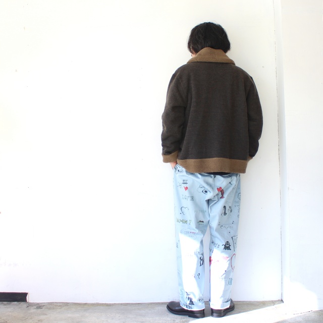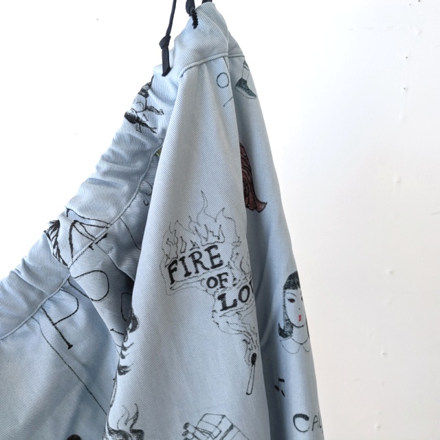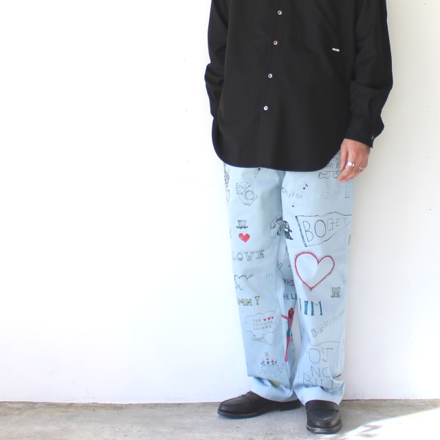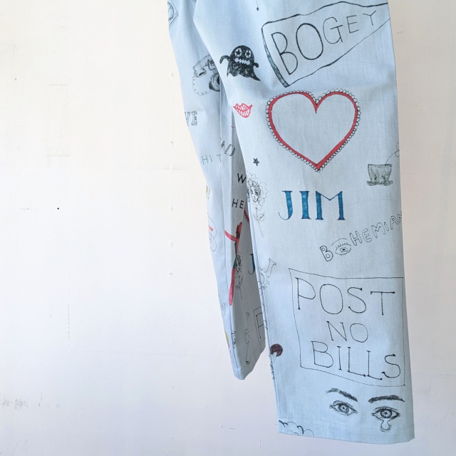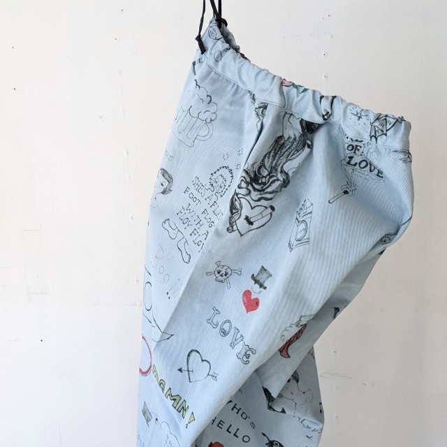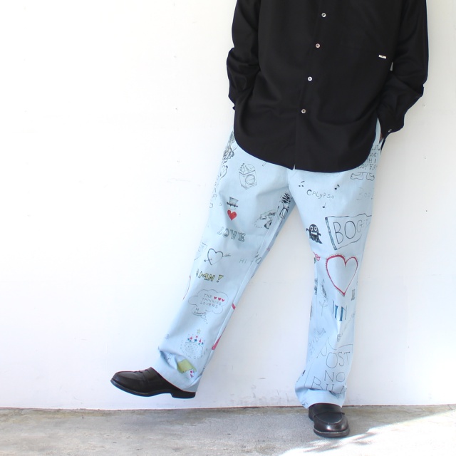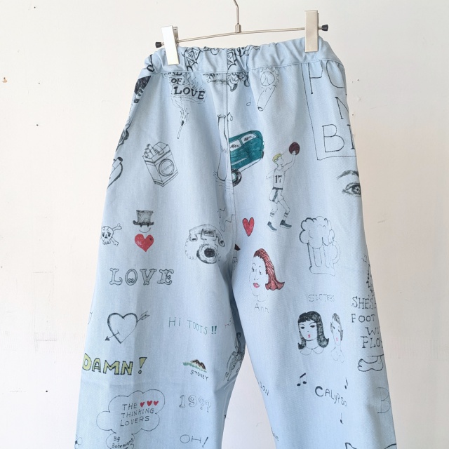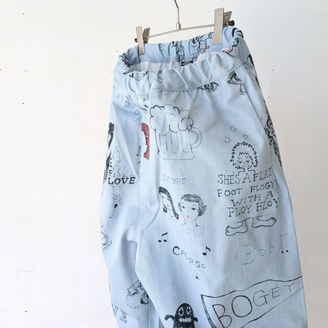 しっかりしたツイル生地にRosyプリントを施したデザインイージーパンツ。