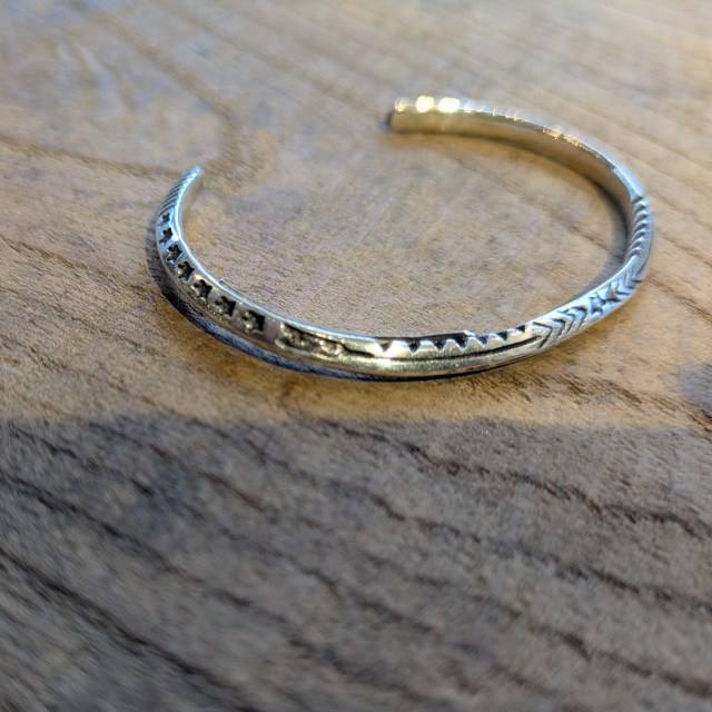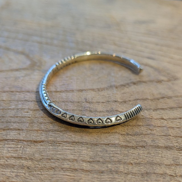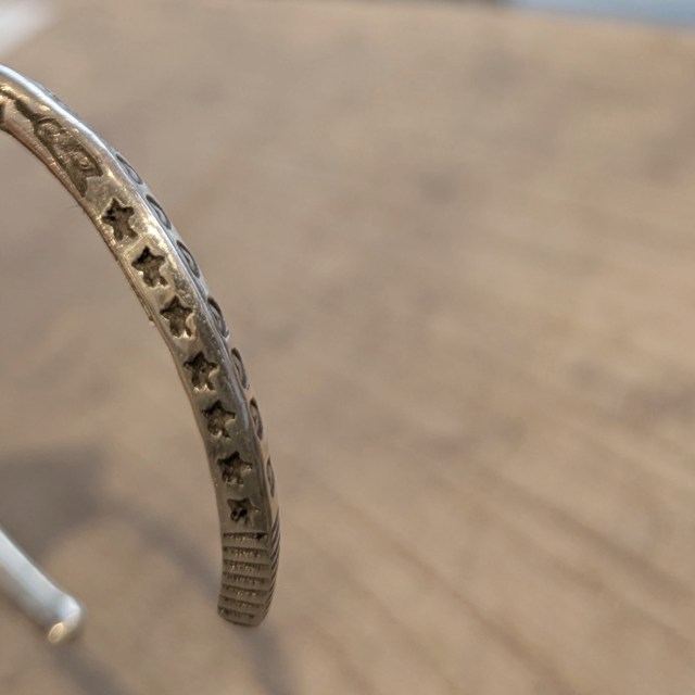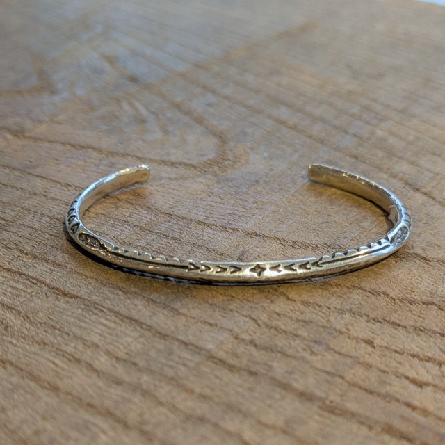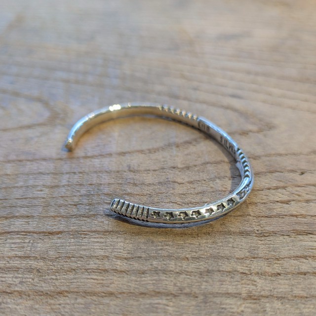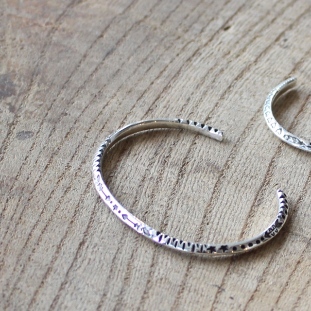 1つ1つ手作業によるスタンプワークで柄を入れたシルバーバングル。