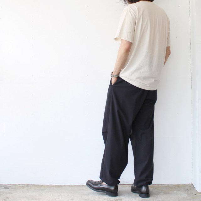 織物とジャージー素材をミックスしたような絶妙な生地のイージーパンツ。