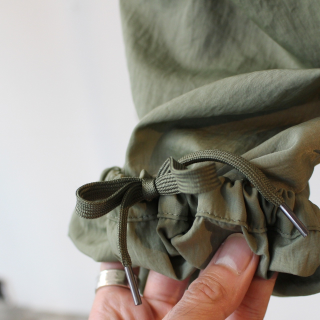 柔らかい質感のナイロン100%生地を使用したカーゴパンツ。