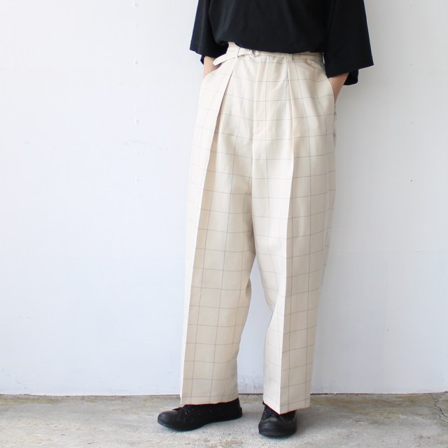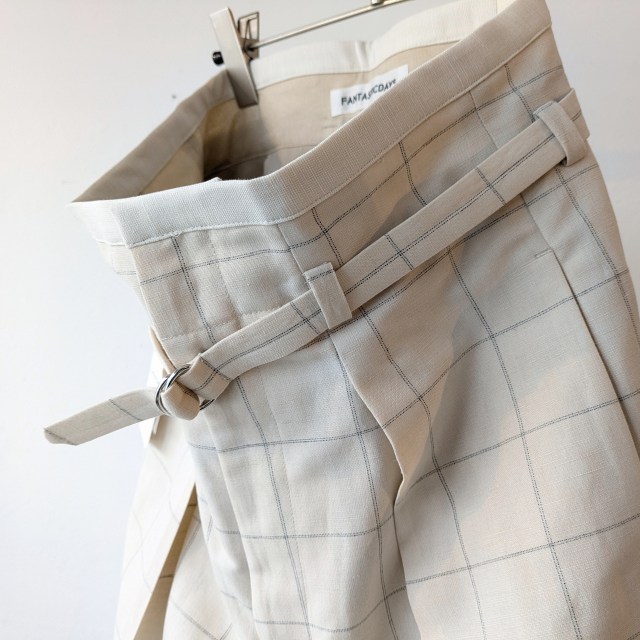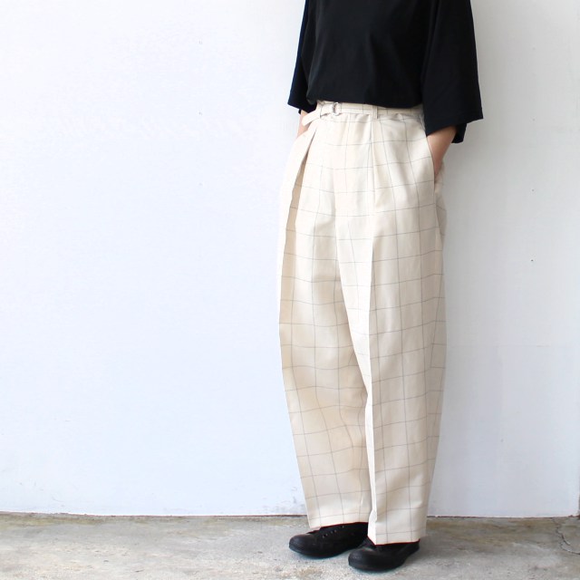 FANTASTICDAYS ベルテッドワイドアンクルパンツ / BELTEDANKLE (IVORY check)