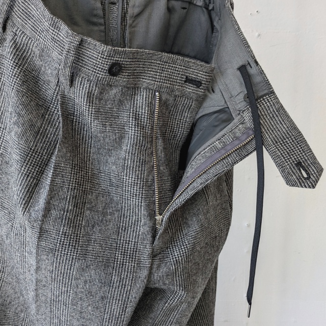 グレンチェックなクラシカルな雰囲気に、カジュアルな穿き心地もプラスしたイージースラックス。