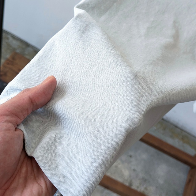 透け感はなく、汗をかいても肌にまとわりつきにくい清涼感のある生地です。