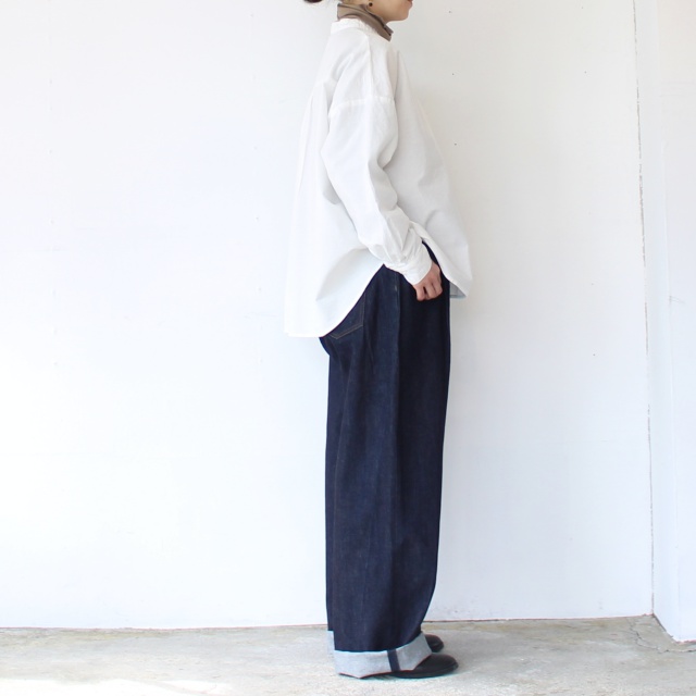 10.5ozワンウォッシュデニムを使用したオーバルワイドパンツ。