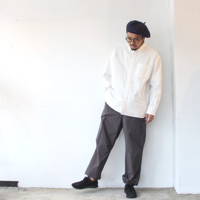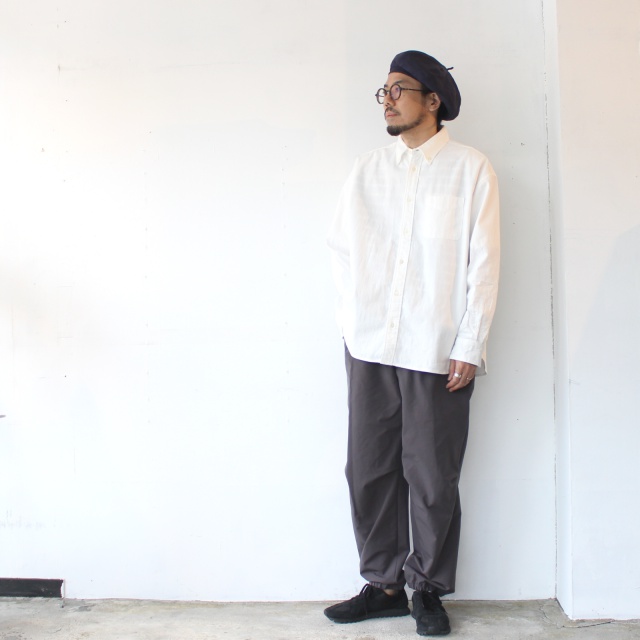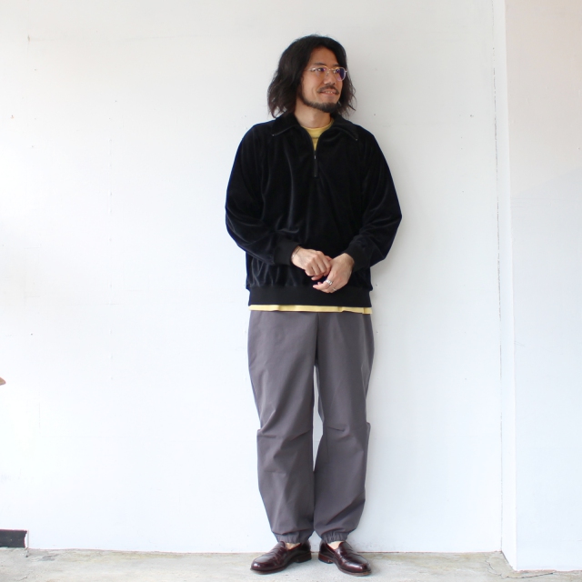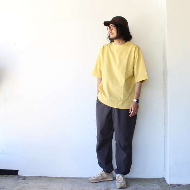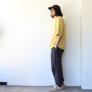 厚手のストレッチ素材を使用したリラックスシルエットのボトム。