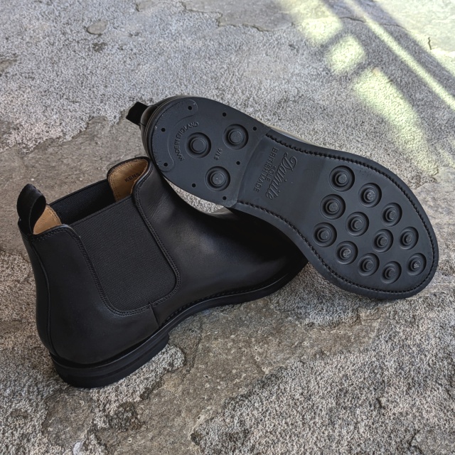甲革は滑らかな表面の上質なフレンチカーフ、アウトソールにはイギリス製ダイナイトソールを使用しており、耐久性・耐滑性が高く、日常履きはもちろん、雨の日の着用にも適しています。