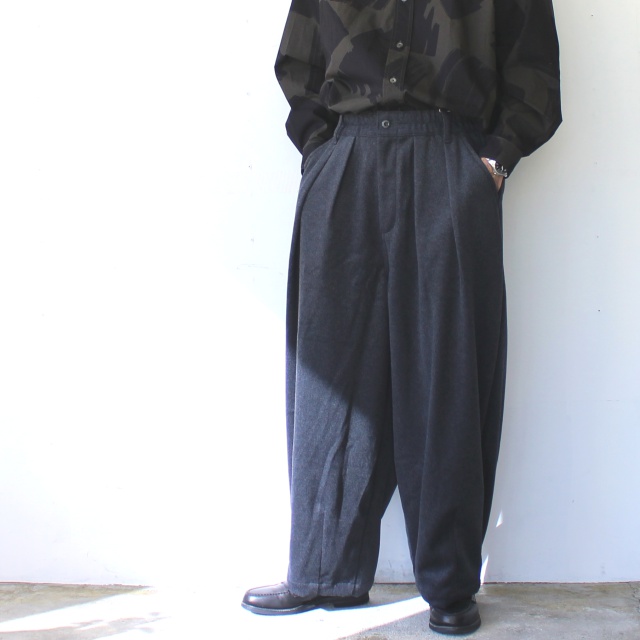 ボリュームシルエットが魅力のサーカスパンツにウールビーバークロスのタイプが入荷。