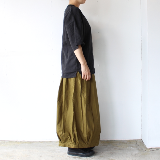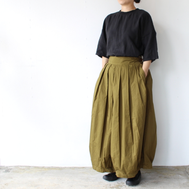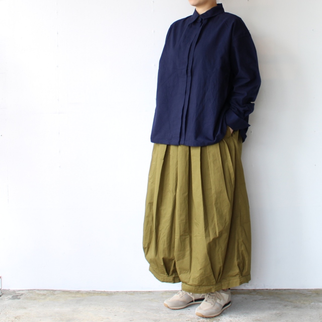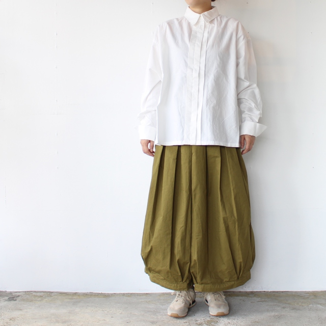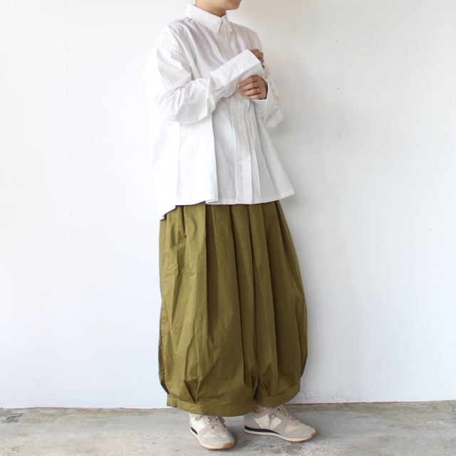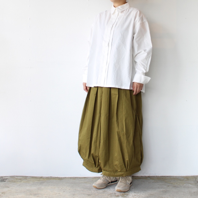 丈を長くし、裾はタックを施すことで少し絞りを入れています。