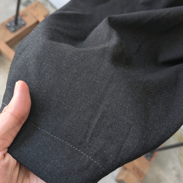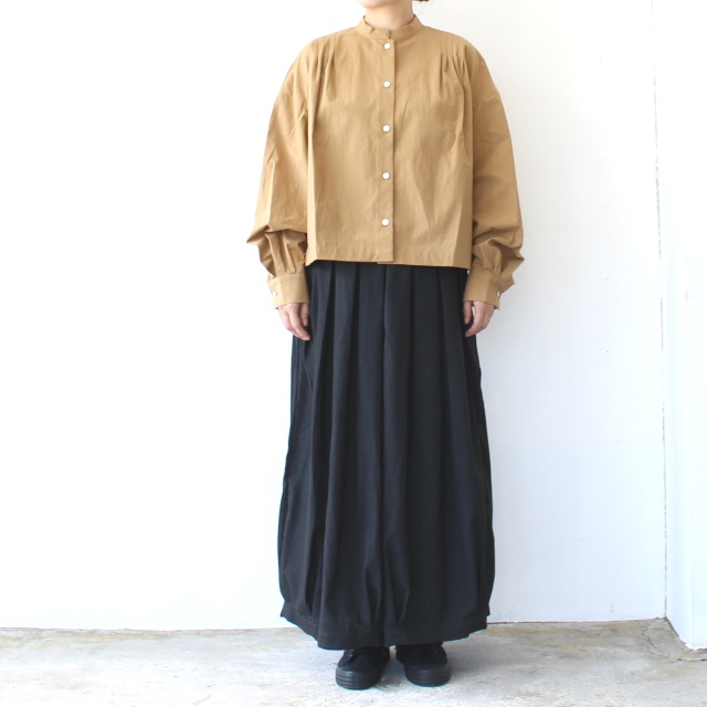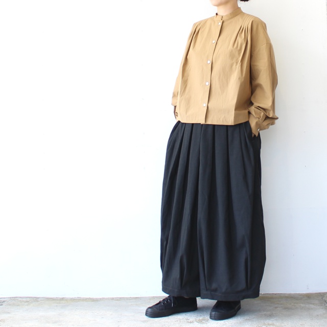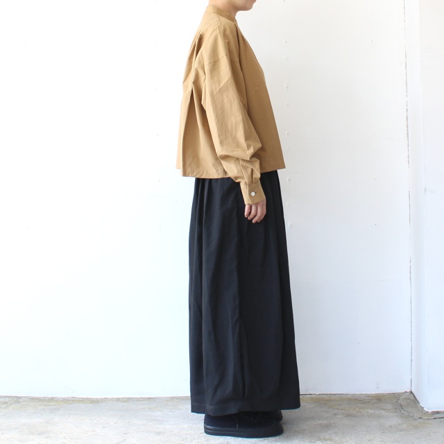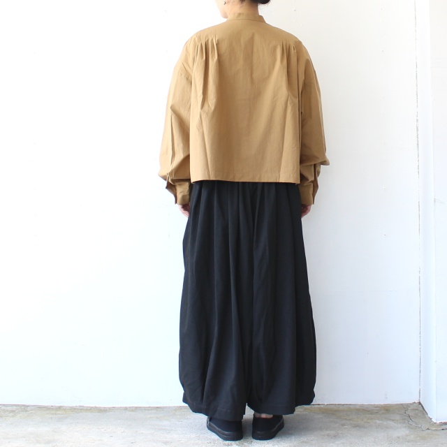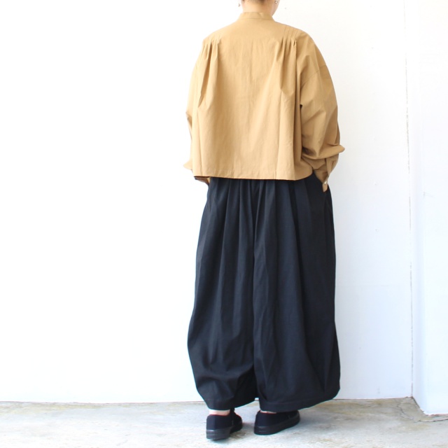 丈を長くし、裾はタックを施すことで少し絞りを入れています。