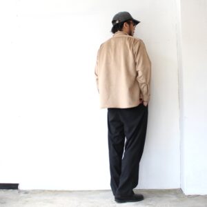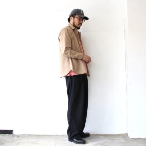 TR素材を使った軽い穿き心地のワイドスラックス。