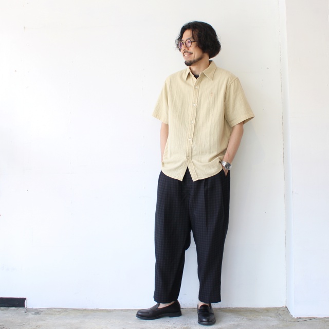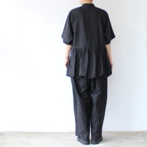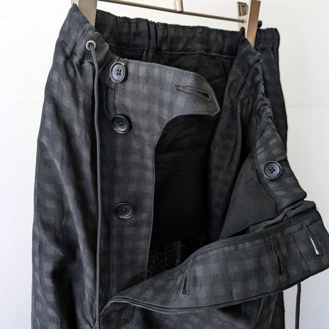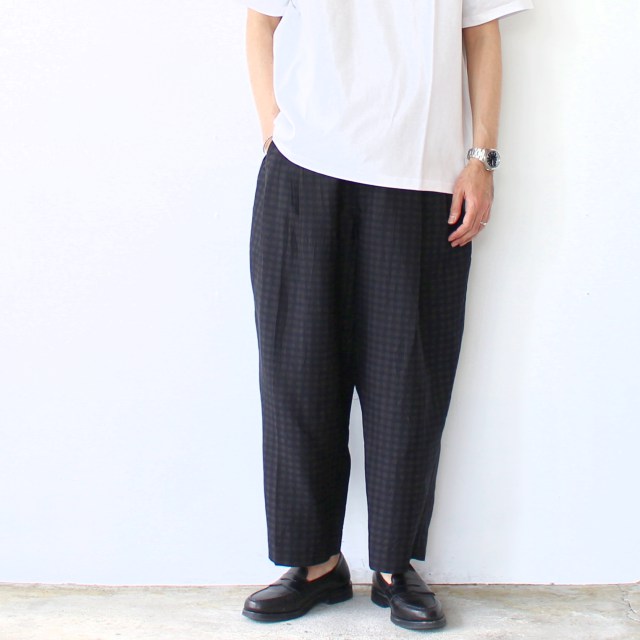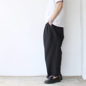 HAVERSACKより「Gingham jacquard tuck wide pants」