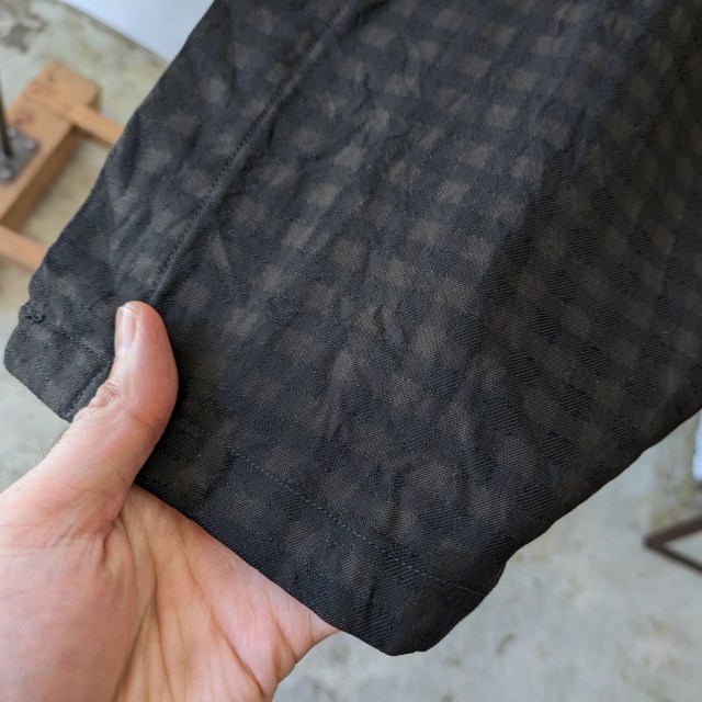 オリジナルのギンガムチェック柄ジャガード織りのワイドパンツ。