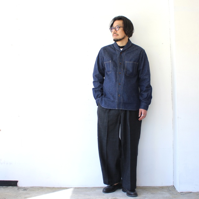 ■ リネンウールヘリンボーンワイドタックトラウザー Linen Wool Herringbone Wide Trousers