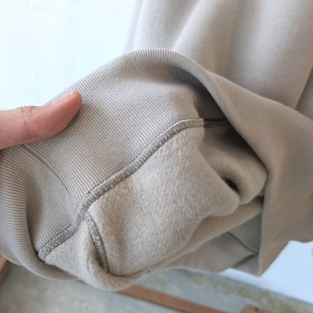 希少なアズマ編み機でゆっくり丁寧に編み上げた裏起毛スウェットを使用。