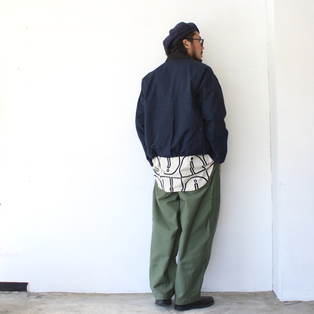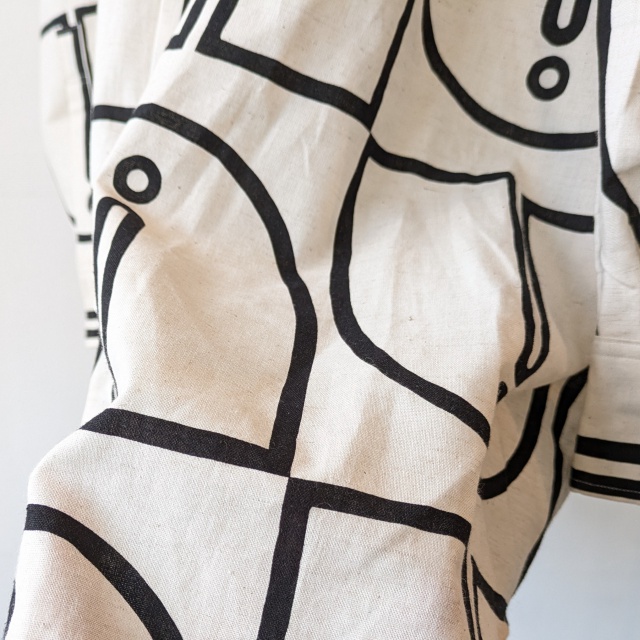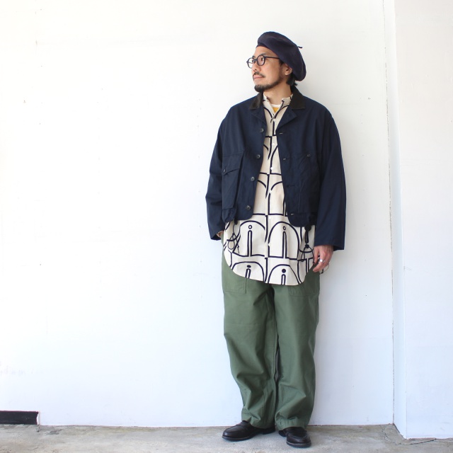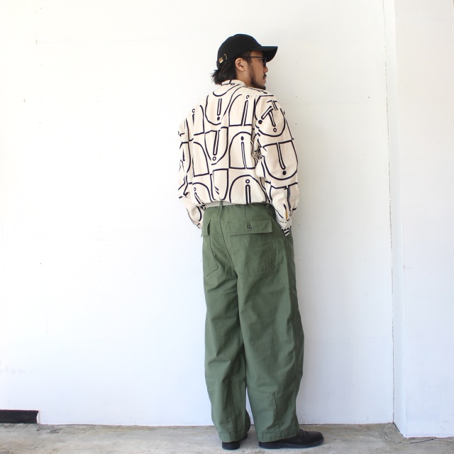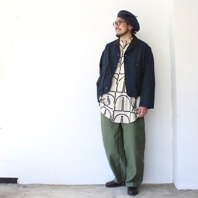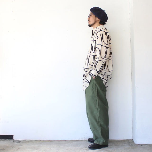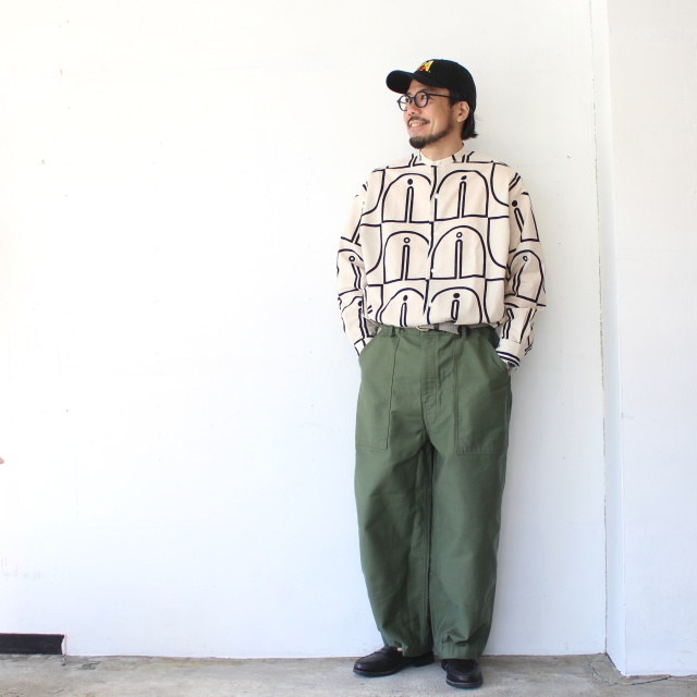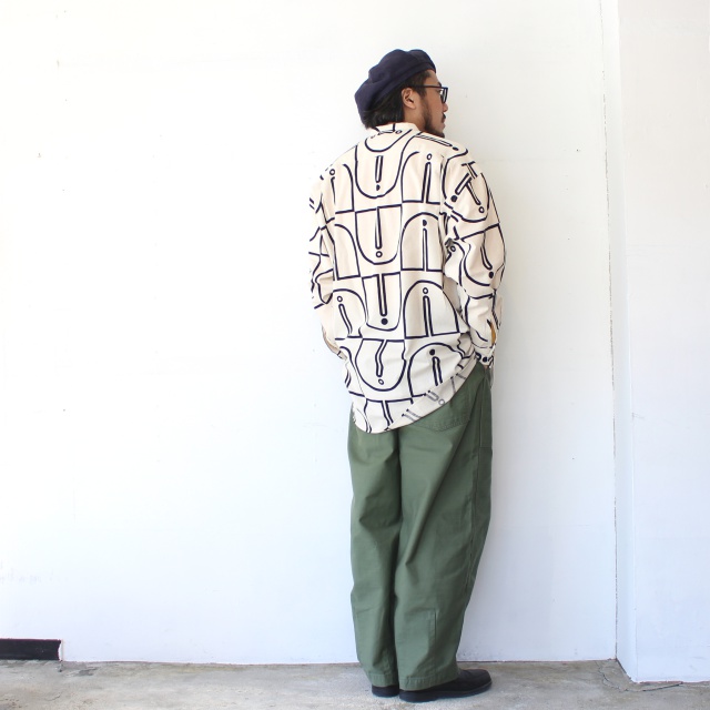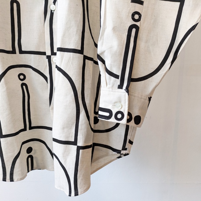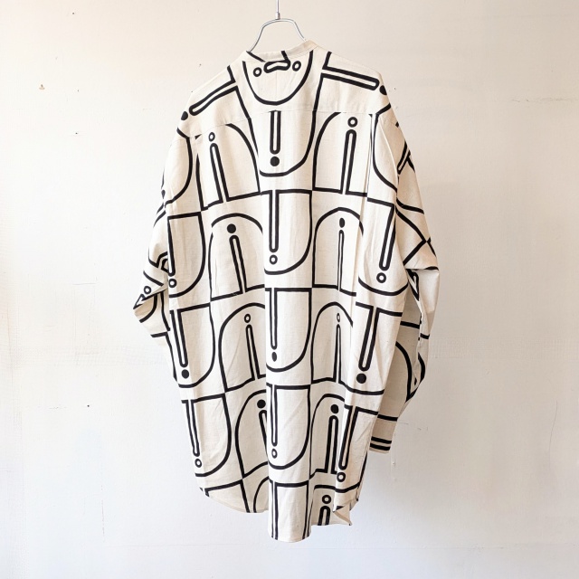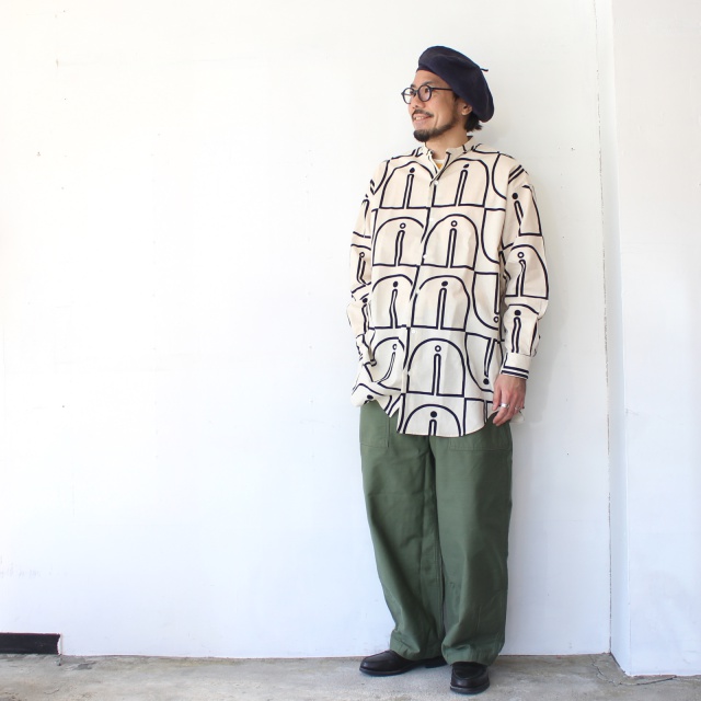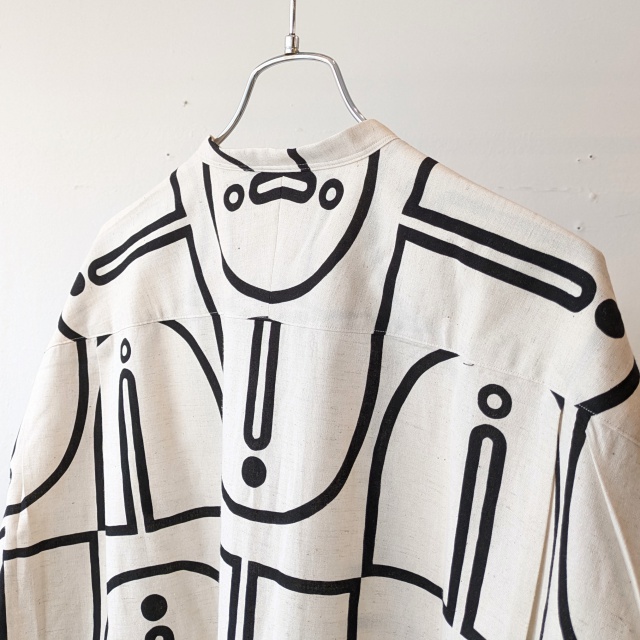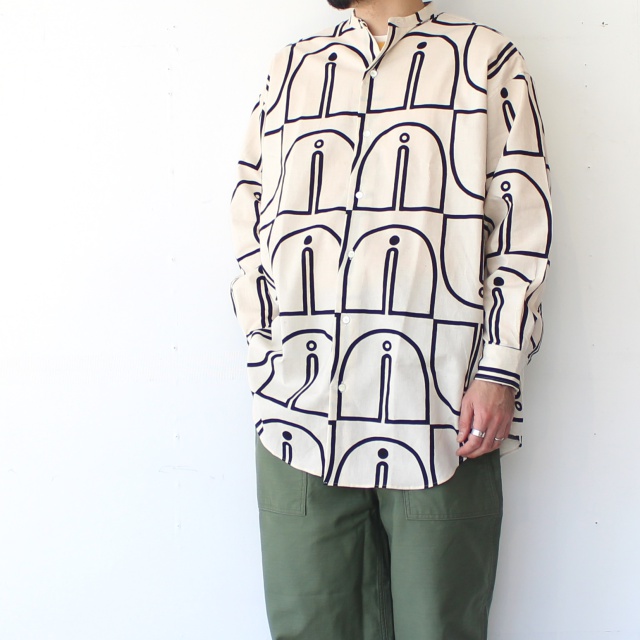 ■ ウッドブロックプリントBCルーズシャツ Woodblock-Print Band Collar Shirt