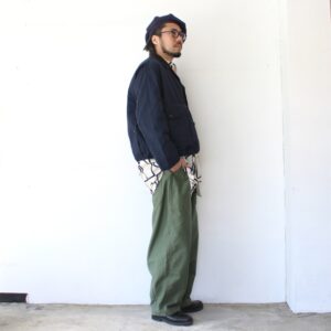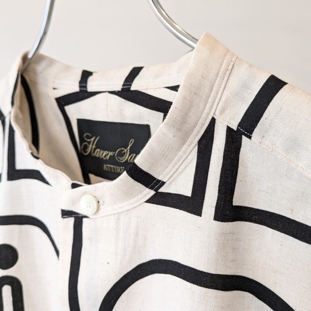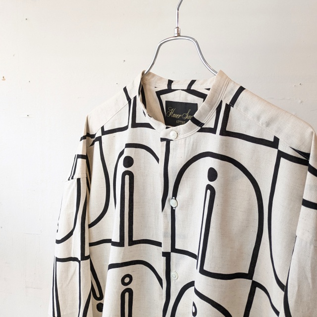 HAVERSACKより「Woodblock-Print Band Collar Shirt」