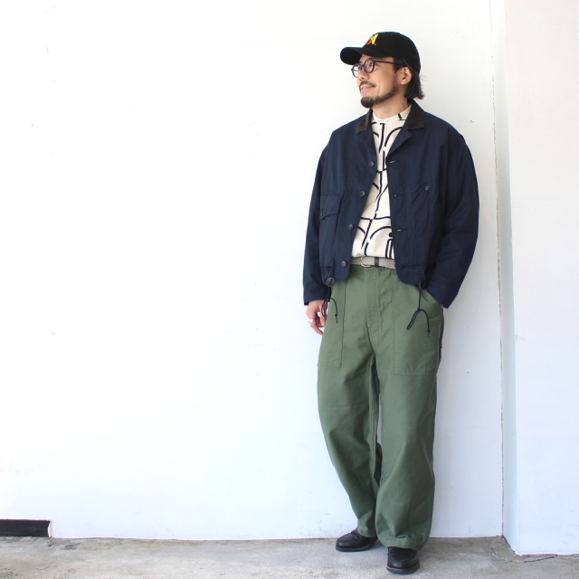 幾何学調のウッドブロック柄が他にはない雰囲気を出しつつ、シルエットはゆったり、着丈もセミロング丈でリラックスしたバランスを表現。