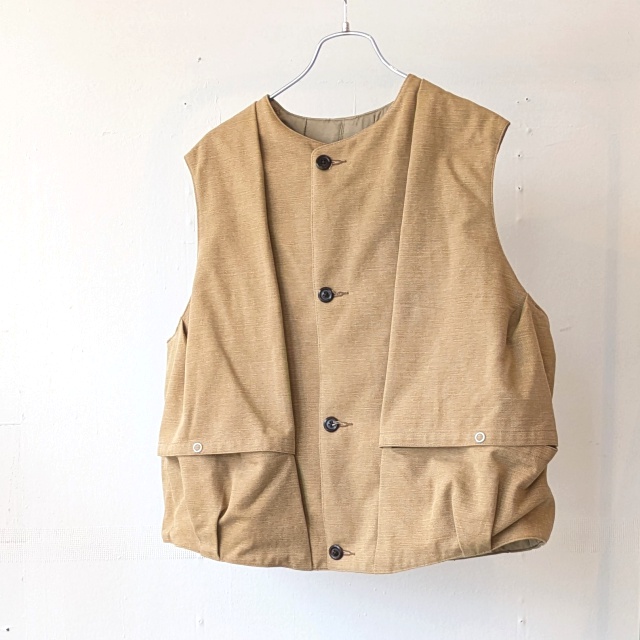 HAVERSACK コットンキャンバス×シルクキルトRVショートベスト Cotton canvas × Silk quilting RV vest (Beige)