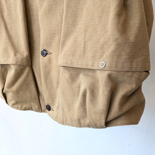 ダック生地部分の肩にはプリーツを入れ、アウターのようなボリューム感とデザイン性をプラスしています。