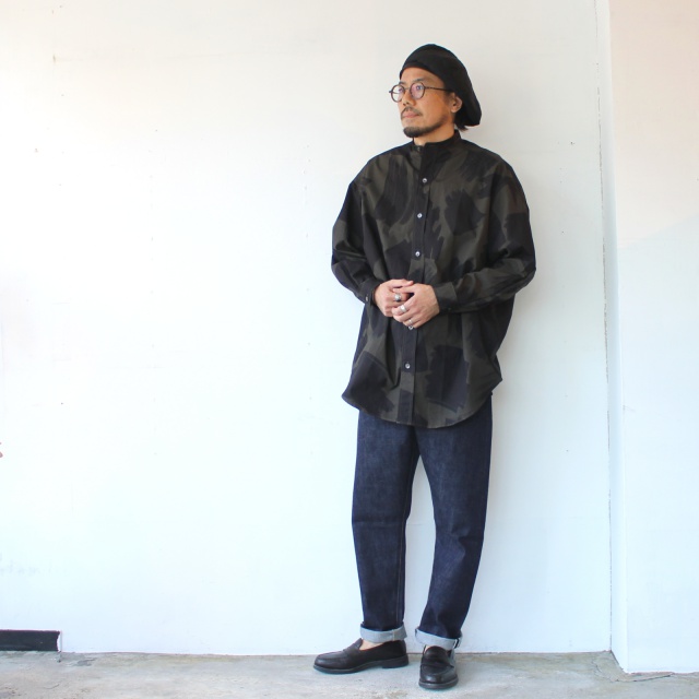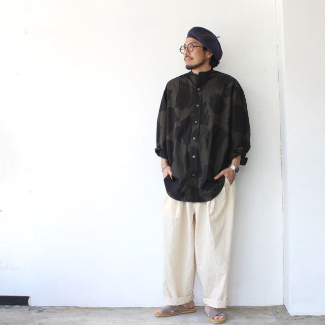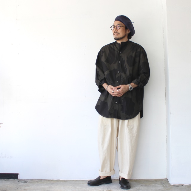 ■ スクエアブラッシュドプリントバンドカラーシャツ Square brushed-print bandcollar shirt