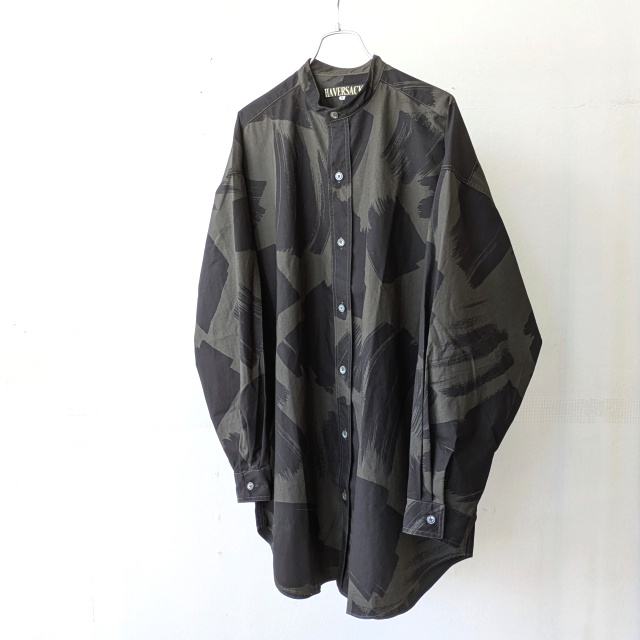 HAVERSACK スクエアブラッシュドプリントバンドカラーシャツ Square brushed-print bandcollar shirt (Khaki brown)