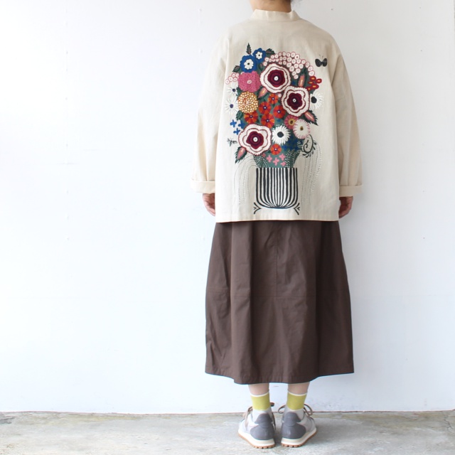 裾にダーツを使わず、生地の切り替えパターンでコクーンシルエットに仕上げたHAVERSACKらしい作り込み。
