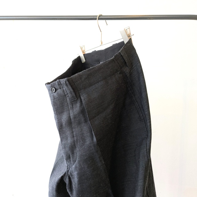 HAVERSACK リネンウールヘリンボーンワイドタックトラウザー Linen Wool Herringbone Wide Trousers (Charcoal Gray)