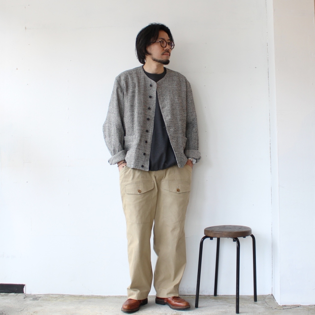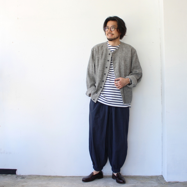 ツイードとは言っても冬の厚手のイメージではなく、比較的ライトな厚みで初夏までさらっと羽織りたくなるのがポイント。(もちろん秋口にも◎)
