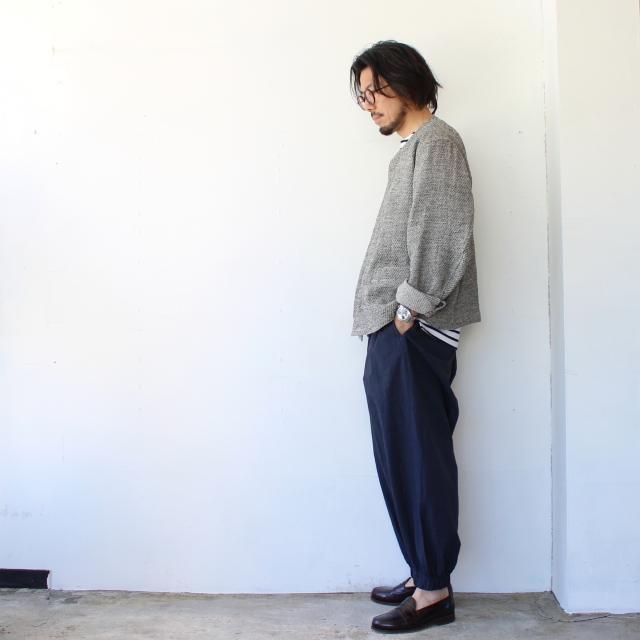 ワイドパンツとの相性が特によく、ワークパンツ、スラックス、イージーパンツなどいろいろ合わせてみてください。
