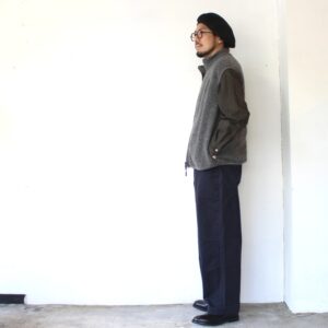 独特なフェード感のある色みが特徴で、着用ごとの経年変化も楽しめる生地です。