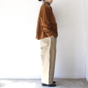まっすぐ落ちる大胆なワイドシルエットを、上品にまとめてくれるHAVERSACKらしいトラウザーです。