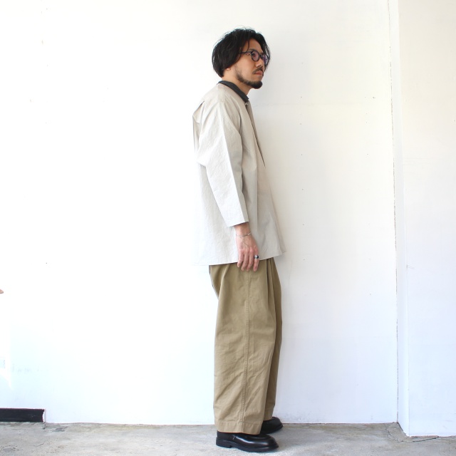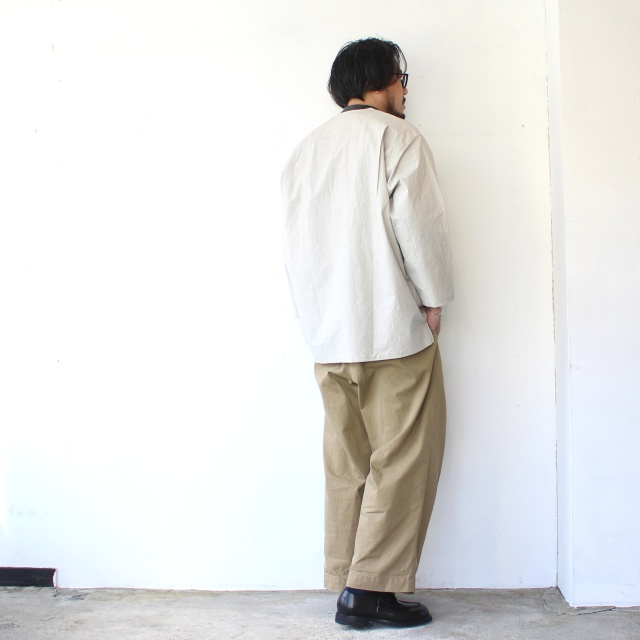天日干し仕上げの粗野感が魅力で、着こむごとに風合いの変化が楽しめるデイリーなシャツに仕上がっています。