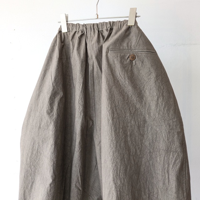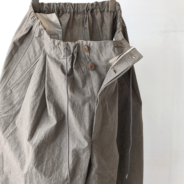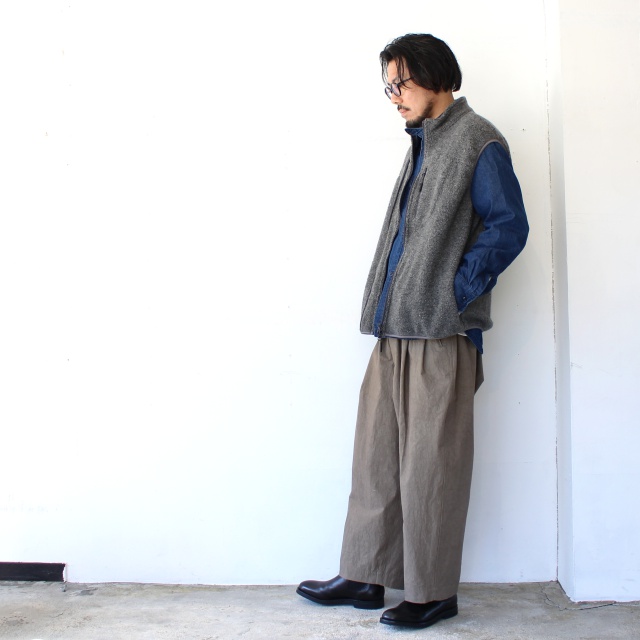 裾にかけてわずかにテーパードさせつつも全体的なワイドシルエットを持ち味にしています。