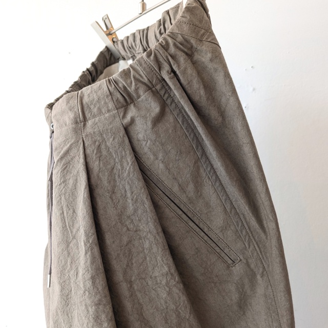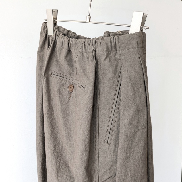 また両玉縁仕様のポケットやタックなど、細かな縫製のグレードも高く、しっかり大人のイージートラウザーに仕上がっています。