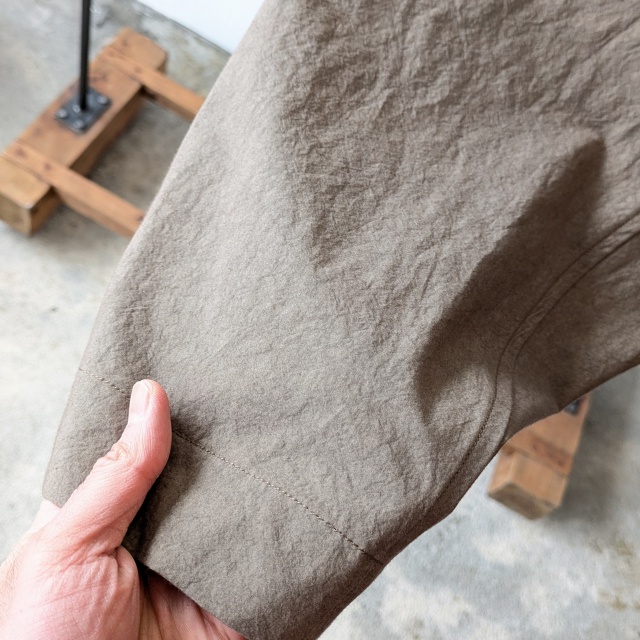 天日干し仕上げでシワ感を加えナチュラルな色み・風合いに仕上げたことで夏でも気軽に穿きやすい一本に。(サンダル合わせもOK!)