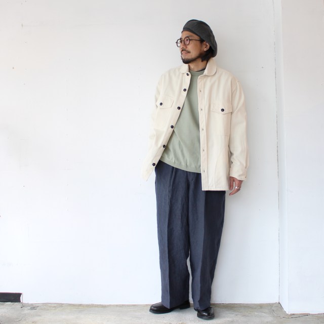 HAVERSACKより「60-High count linen poplin wide trouser」