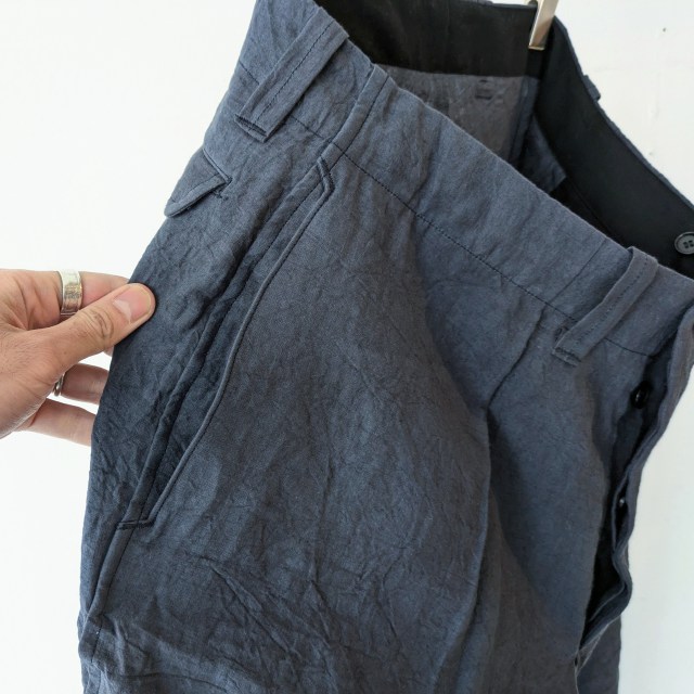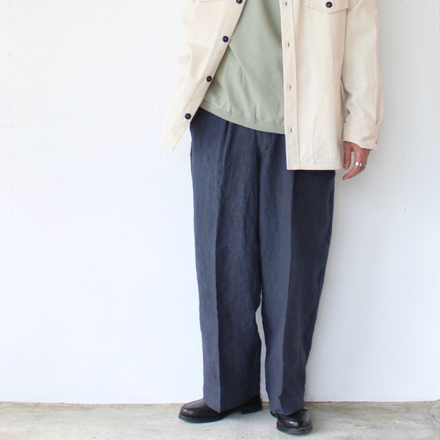 HAVERSACK 60/リネンポプリンワイドタックトラウザー 60-High count linen poplin wide trouser (Navy)