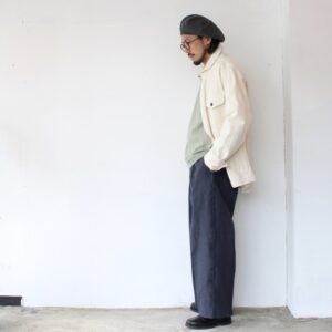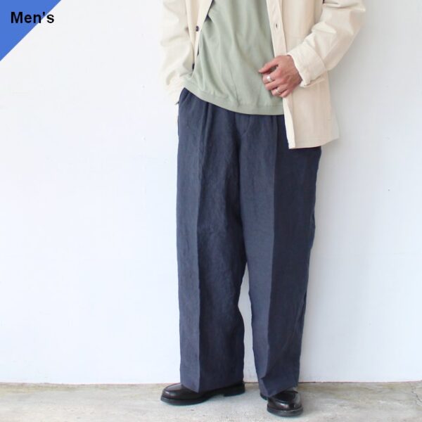 ■ 60/リネンポプリンワイドタックトラウザー 60-High count linen poplin wide trouser