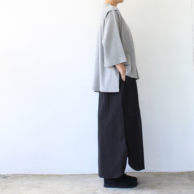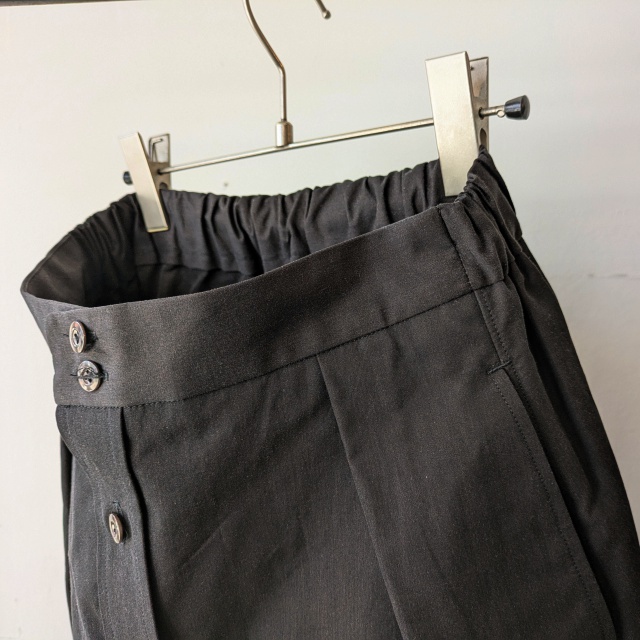 前身は深いインプリーツを入れ、後身のベルトにゴムシャーリングを施し、着易さを考慮した作りに仕上げています。