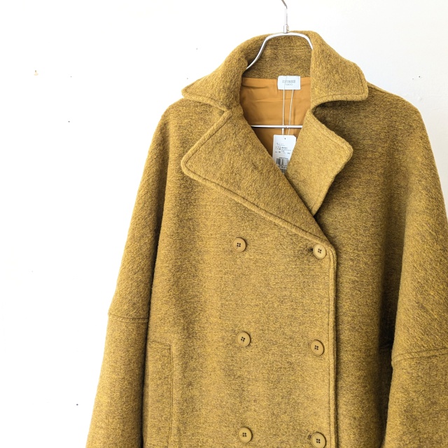 コクーンシルエット、ドルマンスリーブのPコート型でゆったりとしたシルエットが魅力です。