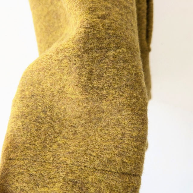 ウールをほぐさずそのまま編み込むスライバーニットにすることで、毛特有の超軽量と温かさを表現でき、インポート生地特有の発色の良さと上質感が特徴。