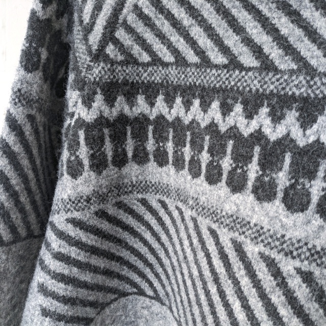 柄は王道なノルディックとも違う、シャープな格子柄をMIX。