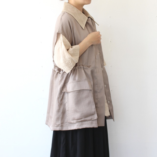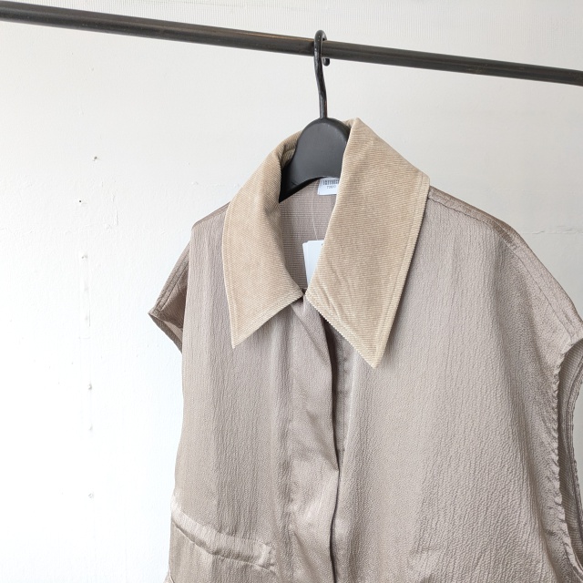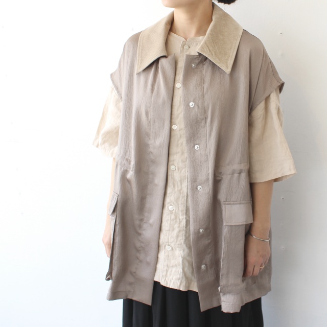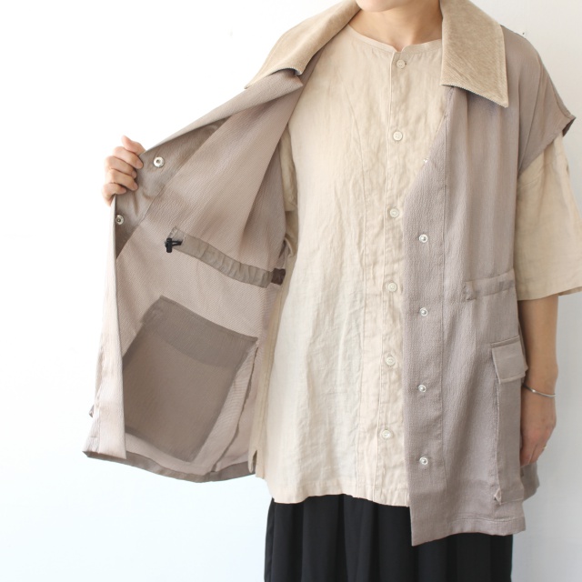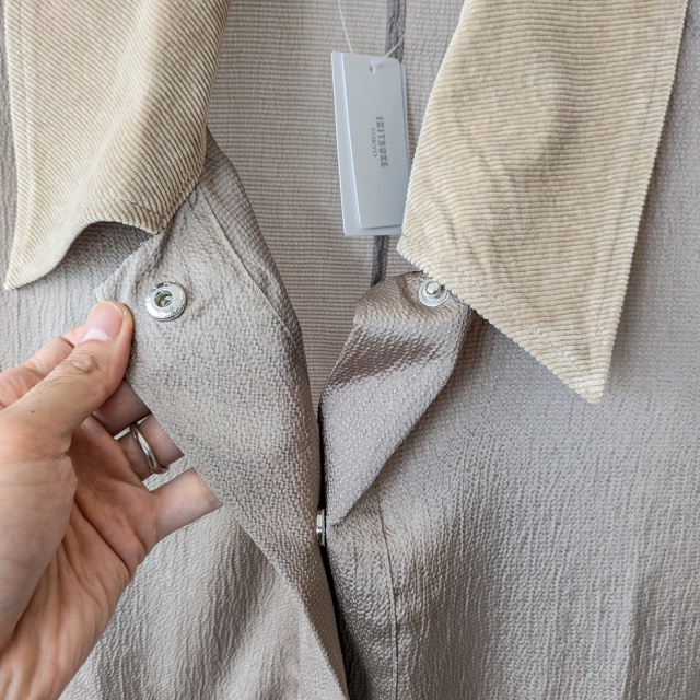 襟部分のみコーデュロイ素材を使用し秋冬の空気感をプラス。